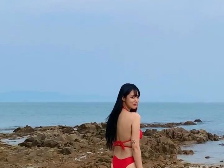 - 바닷가에서 수영복입고 포즈취하는 김갑주