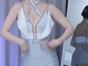 - 여캠 BJ 러아 핑크 꽃원피스 가슴 잡고 털기
