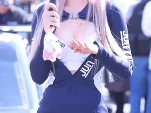 - 레이싱 모델 김연두 아파트 춰주는 팬서비스 브라탑 가슴골