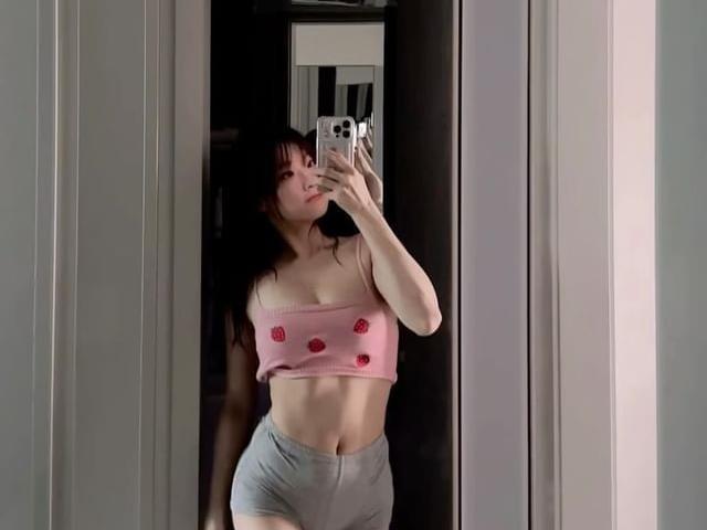 - 강지은, 리은이 운동하면서 화보 촬영 숙인 스포츠 브라 가슴골