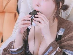 - 강인경 블랙 레이스 브라 가슴골 내놓고 야무지게 삼각김밥 먹방