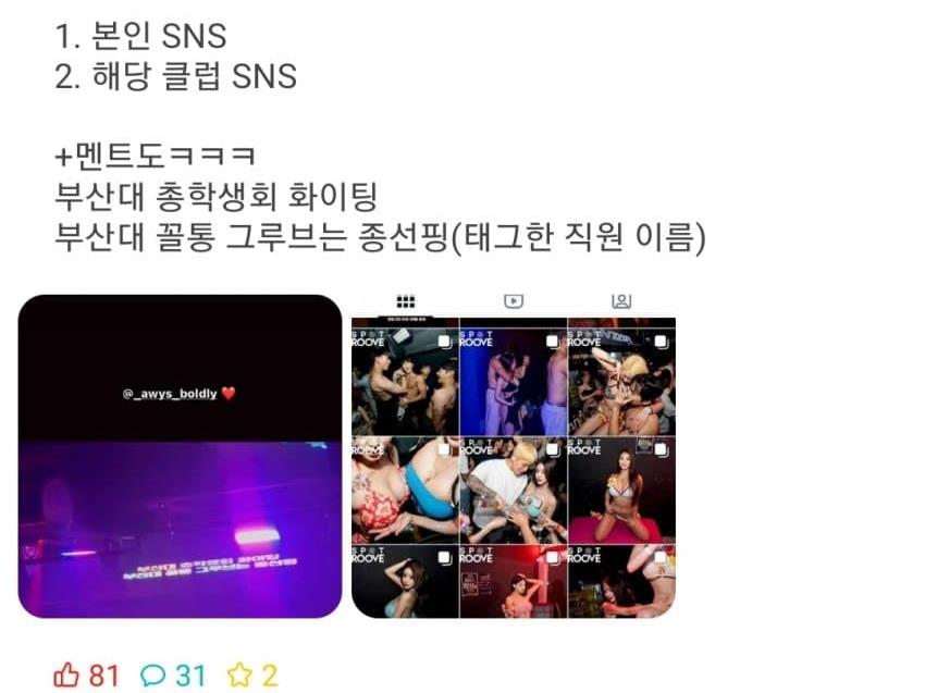 - 현재 욕먹고있는 클럽에 간 부산대 총학생회장
