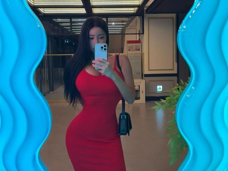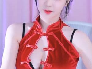 - BJ 러아 본인피셜 허벅지가 존맛탱 빨간 치파오 검정 브라 가슴골