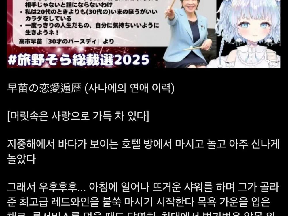 - 버튜버갤러리에 올라온 일본 총리의 연애사정