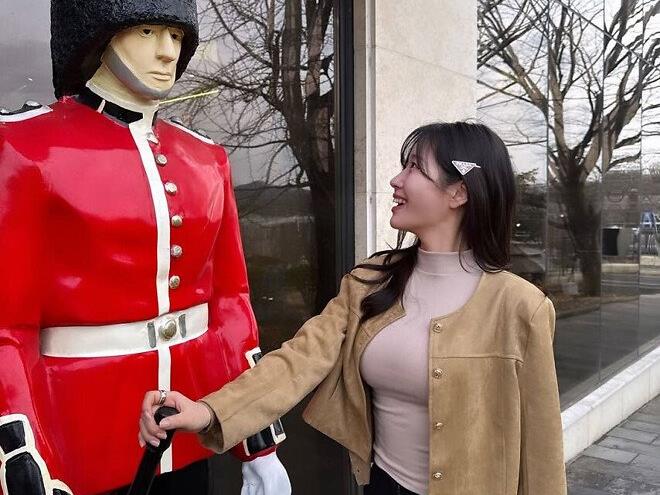 - 야외에서 빠르게 전투복으로 환복하는 누나
