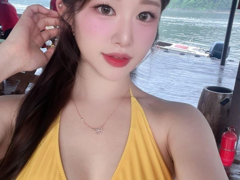 - 뒤태녀 나경 워터밤 녹샛 수영복