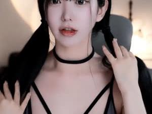 - 고라니율 블랙 레이스 브라 위에 입은 핑크 튜브탑 슴부먼트