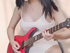 - 기타치는 나코코 노브라 얇은 흰 모노키니 꼭지