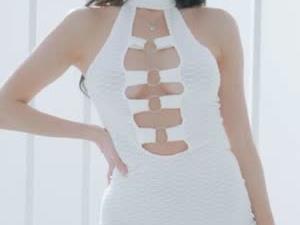 - 포켓걸스 하빈 화이트 홀터넥 원피스 구멍난틈 노브라 가슴골