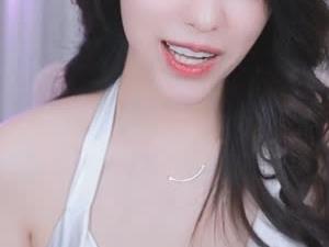 - BJ 미래 화이트 실크 드레스 입고 아래에서 손으로 털어주는 가슴골 출렁임