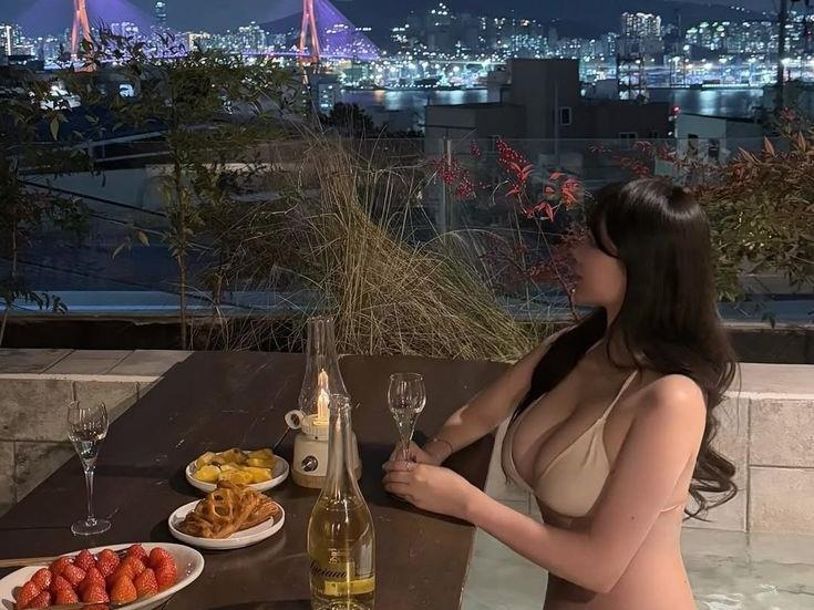 - 한솜비 시스루 핑크 미시룩 가슴골 블랙 팬티
