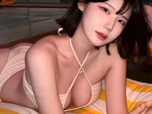 - 고라니율 수영장 베드 엎드린 비키니 가슴골