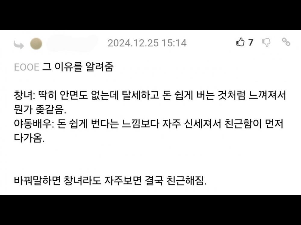 - 창녀는 싫은데 야동 배우는 좋은 이유