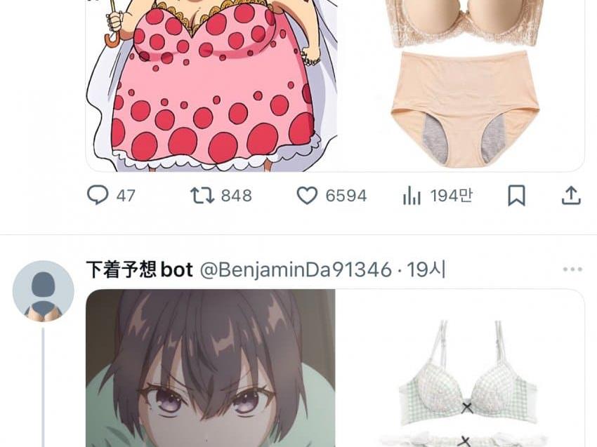 - 트위터. . 만화캐릭 속옷 예상으로 알려주는 봇