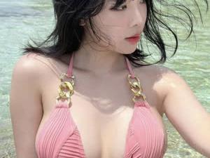 - 바닷가에서 언더붑이 노출된 핑크 비키니 강인경