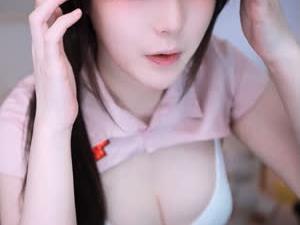 - BJ 짱다 핑크 간호사 흰 나시 크롭탑 숙인 가슴골