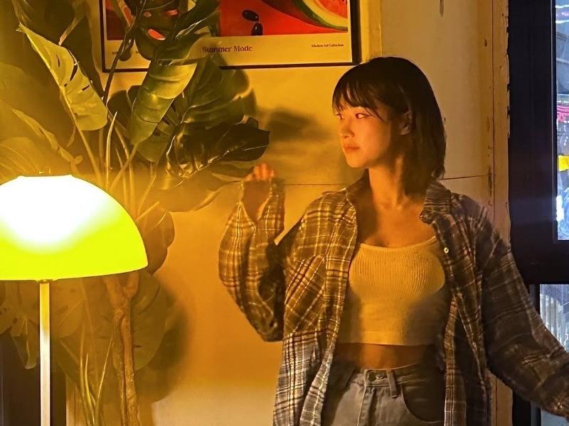 - 다리 꼬고 사진 찍는 누나