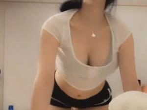 - 침대에서 스트레칭하는 한갱 꽉 끼는 검정 돌핀팬츠 가슴골