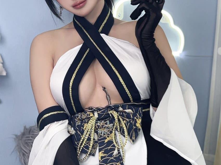 - 레이싱 모델 장미 블랙 브라 시스루 파란 팬티 리본 달린 흰 원피스