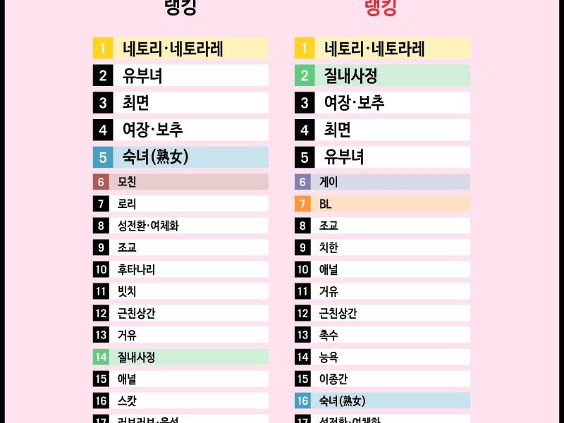 - 남녀 야한 만화 취향 통계