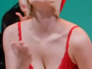 - 트와이스 모모 빨간 비니 란제리룩 숙인 가슴골