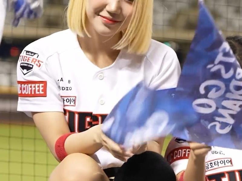 - 쪼그리고 앉은 박성은 치어리더 정면샷