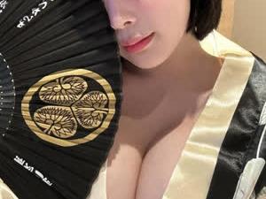 - 강인경 부채 펼쳐 든 유카타 가슴골