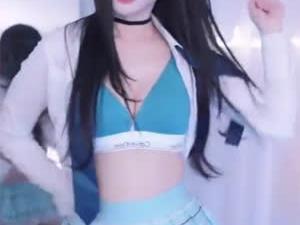 - 의상 좋앗던 BJ 유은 하늘색 CK 캘빈클라인 브라 체크치마