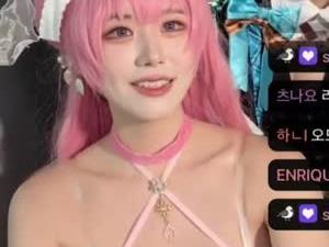 - 코스어 나리땽 핑크머리에 핑크 홀터넥 란제리룩 가슴골