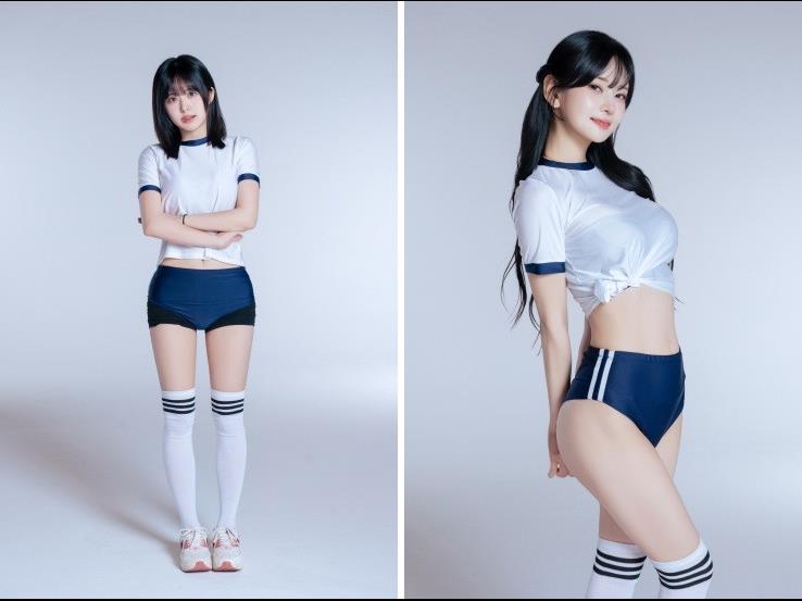 - 포켓걸스 모델 하빈 걷어 올린 크롭티 줄무늬 비키니 몸매